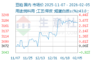 | 用途:饲料用 ;工艺:带皮 ;粗蛋白质≥(%):43.0 ; | 北京豆粕 | 3180元/吨 | 3180 | 0 | 2026-02-05 | |