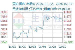 | 用途:饲料用 ;工艺:带皮 ;粗蛋白质≥(%):43.0 ; | 天津 | 3120元/吨 | 3120 | 0 | 2026-02-10 | |